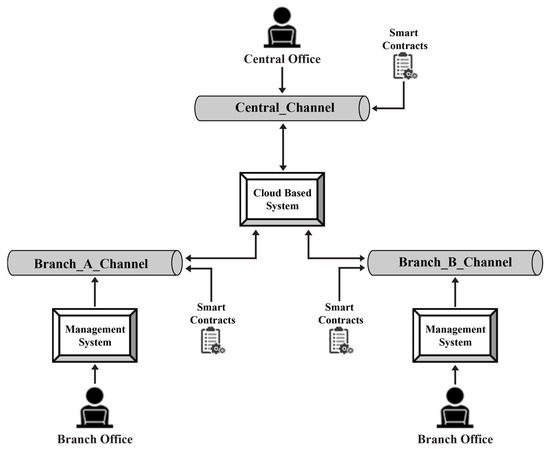 Each branch operates as a separate organization within the Hyperledger Fabric network, equipped with its own set of RFID readers, IoT devices and peers responsible for recording employee activity. These peers write to dedicated branch-specific blockchain channels, such as branch_A_channel, branch_B_channel and so forth. Local data includes entry and exit times, movement through internal zones and event-triggered records for emergency cases or abnormal conditions.