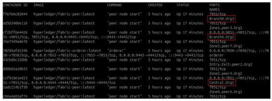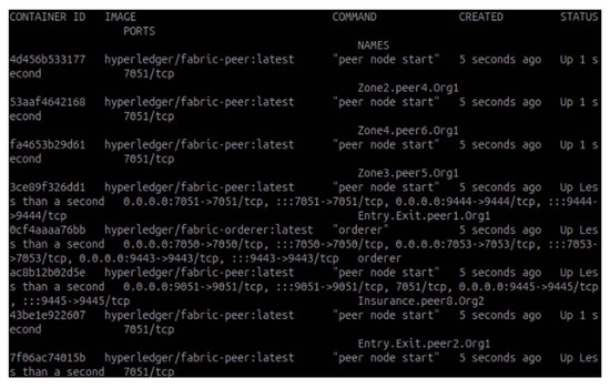 An administrative Docker container is used to test the functionality of the proposed model. The implementation of the business logic is carried out by a smart contract, which in the terms of Hyperledger is called “chaincode”. Every peer is implemented as Docker container.