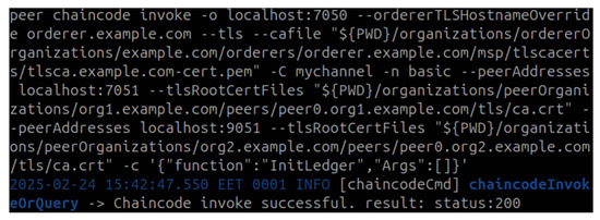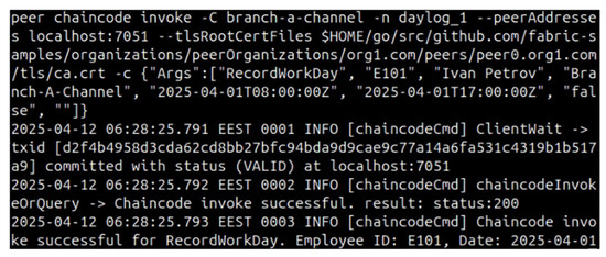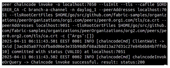 Figure 7 shows the successful execution of the invoke function which is used for writing information into the blockchain. “Result: status 200” proves the completion of the task.
