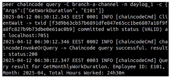 To ensure a seamless workflow, extensive testing was performed to verify the accurate retrieval of aggregated work hours for any given employee, based on their recorded workdays within a specified month. This simulated process aligns with real-world applications of time tracking and reporting within decentralized networks.