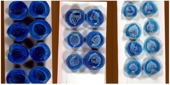 In the study, hyperspectral images were acquired with a maximum spectral resolution of 256 wavelengths and a spatial resolution of 320 pixels per line. Images were taken on a batch, as it is shown in Figure 2. The RGB representation of hyperspectral images in the Near-Infrared (NIR) range, captured during the drying process, is presented there as three types of classes are shown. These hyperspectral images were classified into three distinct categories based on the measured β-carotene content. The data, derived from the drying process, are further discussed in [13].