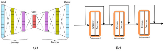 Structure of an (a) autoencoder and a (b) Stacked Autoencoder.