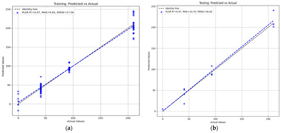 Predictive models for PLSR: (a) training; (b) testing.