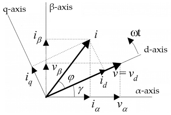 The vector Equation (36) is separated into the components in the d-axis and q-axis: