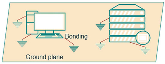 One of the most important methods of EMI protection is “grounding” [7]. This is the provision of an equipotential surface with a stable “zero” potential. By bonding zero-resistance conductors to it, certain parts of the device are “grounded”. An example is shown in Figure 3.
