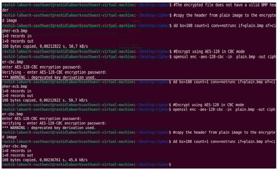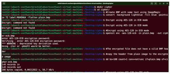 ECB and CBC encryption of an image in the Ubuntu terminal.