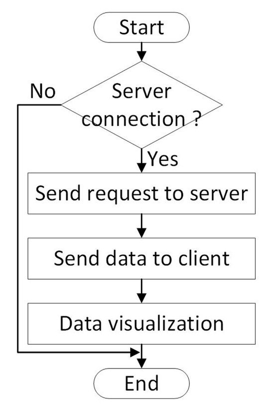 The client application connects to the server and reads the data stored in the database in real time, sending a request to receive it. In case of a successful response, the data is visualized in a GUI application using a format suitable for the user.