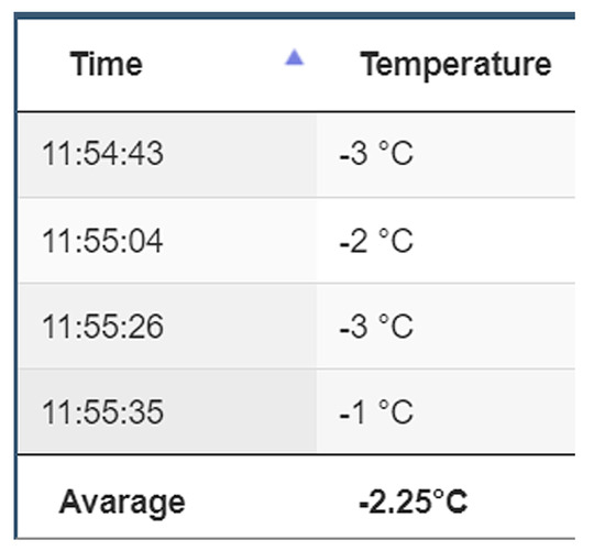 The output within the online platform’s data grid ought to display a single measurement, with the mean thermal value remaining identical.