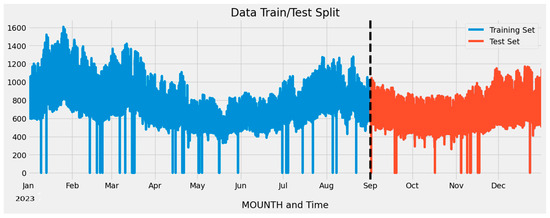 For the above purpose, the data was divided into two groups, as shown in Figure 2, where the dashed line in the month of September indicates the separation of the data.