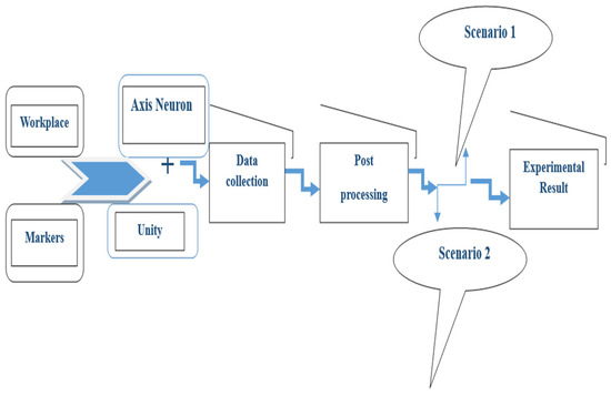 To enhance the visualization of the work process during the execution and preparation of the experiment, a schematic representation of the sequence of actions was created. Motion data were processed using Axis Neuron and Unity software, which provided synchronized data acquisition and visual analysis.