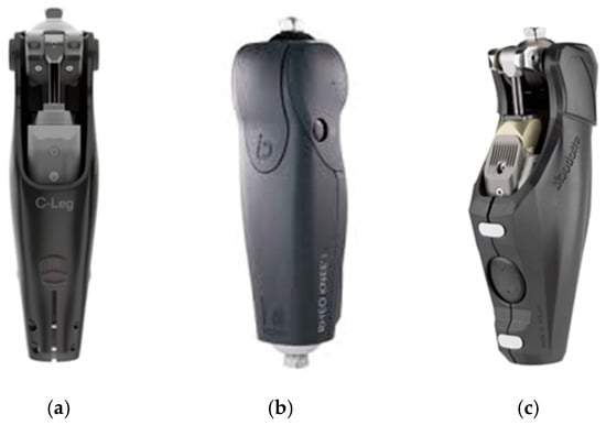 Modern intelligent industrial knee prostheses: (a)—C-Leg (Ottobock); (b)—Rheo Knee (Össur); (c)—Genium X3 (Ottobock).