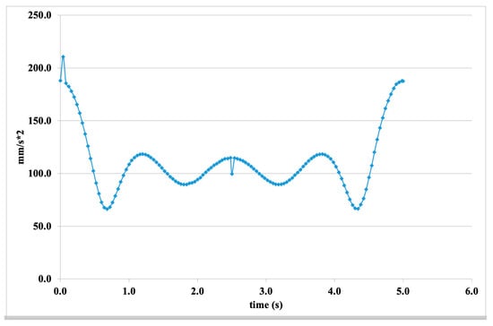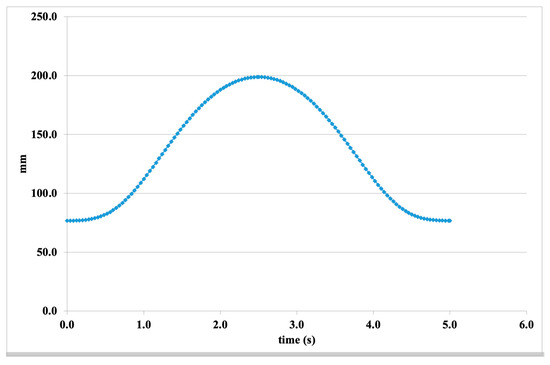 The linear displacement (Figure 10) demonstrates movement from 76.7 mm to 198.9 mm, indicating the overall range of motion and its variation across repeated cycles.