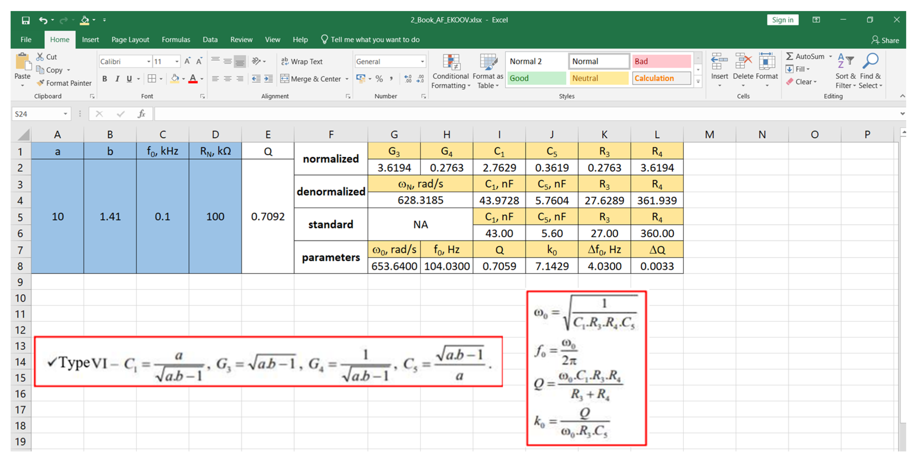 Table 1)—by solving a system of four equations with five unknowns (for LPFs, HPFs and BPFs according to a 5-component scheme, assuming the additional condition