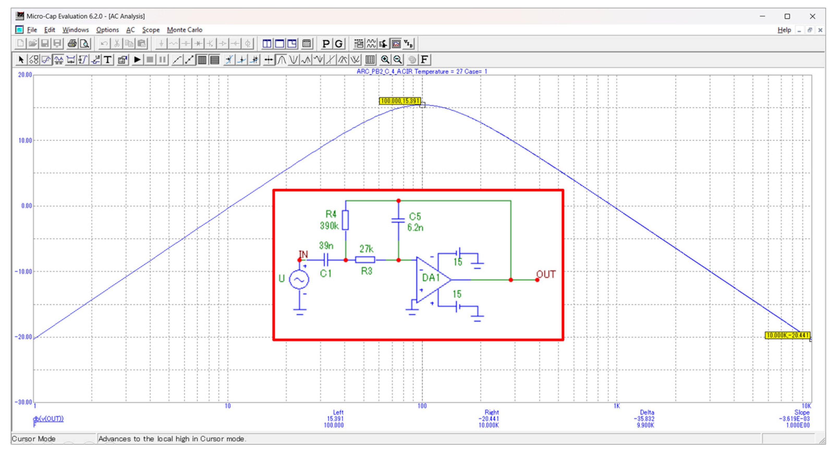 Figure 4 shows the two cut-off frequencies of the passband, with a drop of 3
