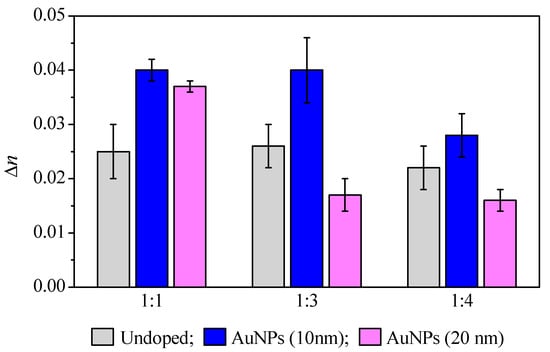 The calculated values of Δn for all studied samples using the iso-line approach are presented in Figure 2 along with the error bars calculated as the standard deviation from the average value of two samples.