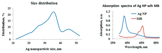 Shown in Figure 2 is the size distribution of Ag NPs and the absorption spectra of Ag NP with the MB solution.