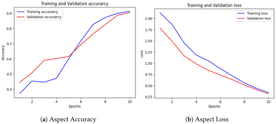 The performance of the proposed deep learning-based aspect-level sentiment analysis is presented in Figure 4 and Figure 5. The model was trained on two separate tasks: identifying aspect words and polarity classification of the aspect words. The model was also evaluated on both aspect word extraction and aspect word polarity classification.