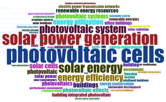In the Word Cloud visualization, the presence of diverse terms from different fields confirms the need for cross-sector cooperation, with topics such as “sustainable development” and “architectural design” illustrating the multifaceted nature of BIPV research.