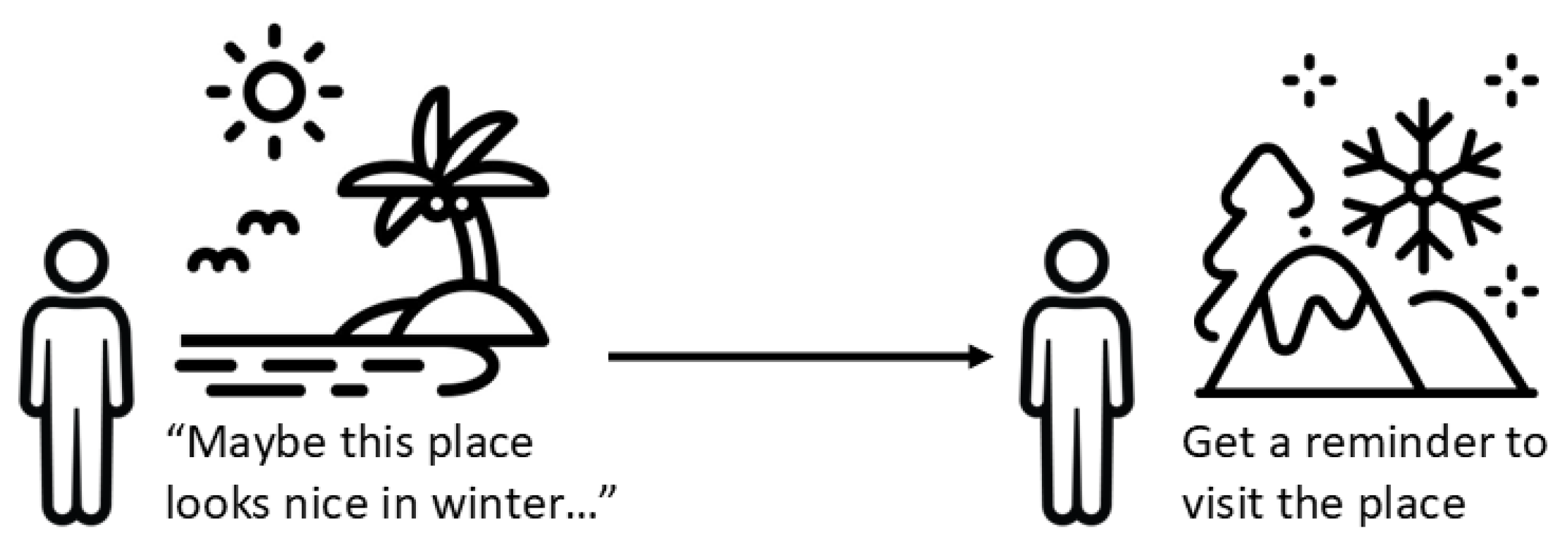 Figure 4. The exact time when this traveler can come back to the area cannot be determined yet, but it would be helpful to receive a reminder about this place if it happens that one day the traveler is around the area again.