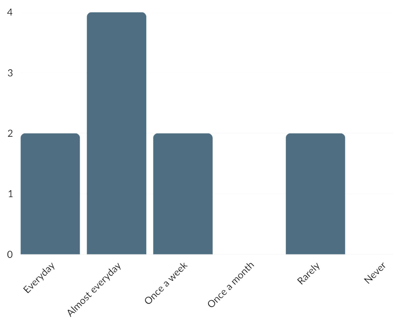 To understand the importance of the digital planning tools, we asked the participants about their usage frequency. The results show that 60% use these tools frequently, either daily or almost every day, while 20% use them weekly, and another 20% rarely use them. This indicates that planning tools are widely utilized, although with varying frequency.