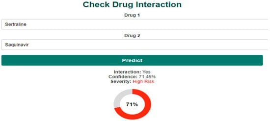This acts as a bridge between complex backend operations and an intuitive visual interface that can be easily understood by people in medical settings, who are the target group, hence ensuring smooth usage. Users enter drug names into simple text boxes while receiving predictive results instantly. These include interaction predictions, confidence scores, and severity levels, which are displayed in a concise manner. The interface is completely responsive, and it adjusts depending on the device being used. This guarantees that any user can access it irrespective of their desktops, tablets, or smartphones. There are several interactive components such as a chatbot, medication reminders, and downloadable reports for enhancing user experience. These features make this app a fully fledged healthcare tool.