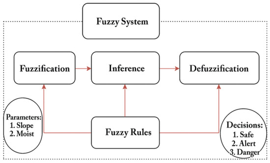 Several studies have demonstrated the integration of fuzzy logic methods with multi-sensor networks for landslide early warning purposes [14,15]. By combining data from different types of sensors, such as GPS, rainfall gauges, and soil moisture sensors, these systems can assess landslide risk levels and trigger warnings based on fuzzy inference algorithms. The fusion of multi-sensor data enables comprehensive monitoring of landslide-prone areas and enhances the accuracy of early warning predictions.