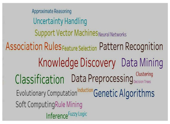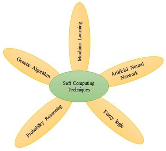 Data mining represents a crucial process employed to unveil hidden patterns within extensive databases. Within this domain, a diverse array of functionalities, algorithms, models, and techniques are applied to uncover and extract pertinent patterns from vast data repositories [3,4]. In the last few decades, data mining has played a vital role in decision-making and is considered an essential tool for performing different operations [5,6]. The role of soft computing approaches in this context is illustrated in Figure 1.