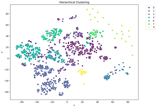 t-SNE visualization of agglomerative (hierarchical) clustering (n = 10).