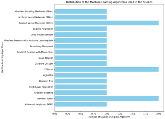 Distribution of the machine learning algorithms used in the studies.