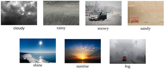 Recently, with deep learning techniques, AVS effectively identifies weather conditions to make appropriate decisions to adapt to new situations and environments easily. In Ref. [], a model was developed to detect six weather classes: cloudy, rainy, snowy, sandy, shine, and sunrise, demonstrating their superior classification capacity. They used deep neural networks utilizing transfer learning techniques. Specifically, they developed a deep learning model for weather detection based on the performance of three well-known efficient deep convolutional neural networks (CNNs), i.e., SqueezeNet CNN, (Residual Network (ResNet)-50 CNN, and EfficientNet-b0 CNN. Moreover, the performance was evaluated using a combination of two weather imaging datasets, MCWRD2018 [] and DAWN2020 []. Both two datasets are available for download and reuse and support open science.