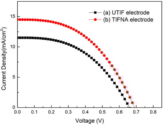 The I-V characteristics of DSSCs prepared using UTIF and TIFNA films are shown in