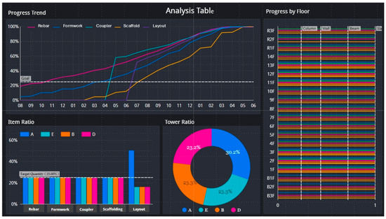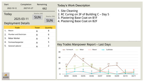 To verify the accuracy of the data, the system output results were compared with the on-site progress to confirm the consistency of the execution data with the current situation (Table 3). The comparison results serve as the basis for the calibration of future forecasting models and decision-making (Figure 4 and Figure 5).