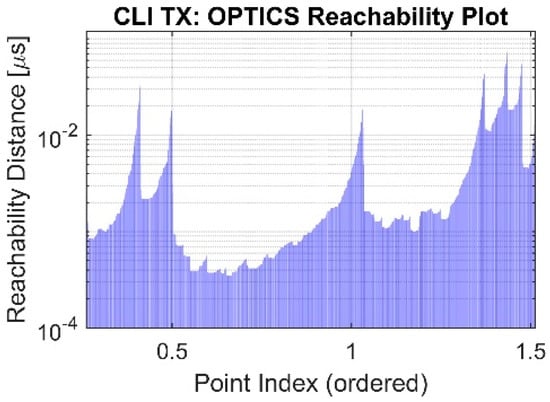 The OPTICS algorithm is a density-based clustering technique that extends the density-based spatial clustering of applications with noise (DBSCAN) to overcome its sensitivity to a single global distance threshold. Instead of forming a fixed number of clusters based on a predefined density, OPTICS generates an ordered representation of the data’s clustering structure, which allows the discovery of clusters of varying densities. The algorithm uses core distance (CD) and reachability distance (RD) to reorder the indices of points close to each other. Elements between adjacent vertices of RD belong to the same cluster. One of the two key parameters of the algorithm is the maximum threshold (ε) of neighborhood size, but it does not fix clusters based on it. The other is the minimum points (MinPts), which defines the minimum number of points required in a neighborhood for a point to be classified as a core point. The main steps of the OPTICS algorithm are as follows.