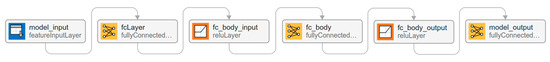 For the AI agent, we used the MATLAB built-in PPO reinforcement learning model. For testing, we used a value of 16 for τ, meaning a grid of 4 × 4 observation regions. The values observed were regarded as the agent inputs, while the proposed number of CHs was the output. Figure 1 presents the neural network layout, which has 77.8 k learnable parameters. We restricted this predicted value to an interval between 5 and 15% of the active nodes. If the predicted value fell outside this range, we calculated the new proposed CH number using the average of the last three values, if available, or else we clamped it. In WSNs, the state st at time step t can be defined as a vector comprising of the node count and residual energy levels in each grid section, as defined in Equation (1).