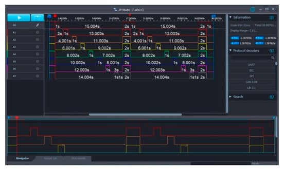 - Zeroplus Technology Co., Ltd. Logic Analyzer Use Guide; User Guide, Ver. 1.00.01. Zeroplus Technology Co., Ltd.: Taipei, Taiwan. Available online: https://www.zeroplus.com.tw (accessed on 1 March 2025).