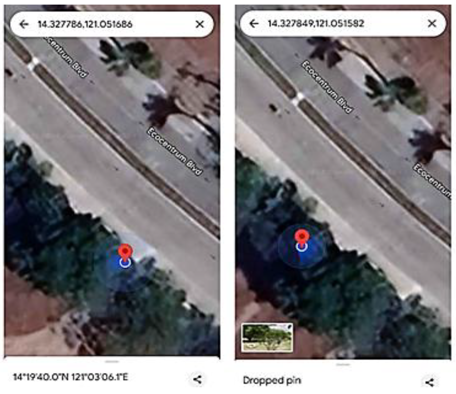 Device 2 | 14.3277607, 121.0517474 | 14.327849, 121.051582 | 99.9994% | 99.9999% |