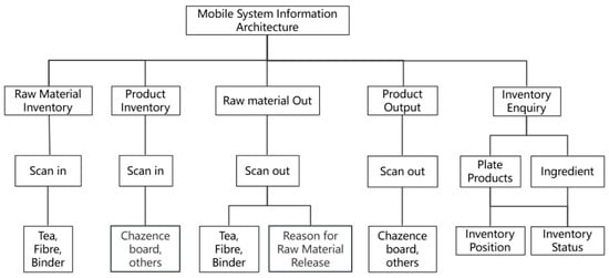The mobile interface was designed for on-site factory operators, enabling them to perform inbound and outbound inventory operations through barcode scanning. The data is synchronized in real-time with the system’s backend, enabling immediate accessibility to both the production department and management personnel. Considering the complex factory environment and the difficulties that factory workers encounter when using mobile devices, the mobile interface features a simple functional architecture (Figure 3).