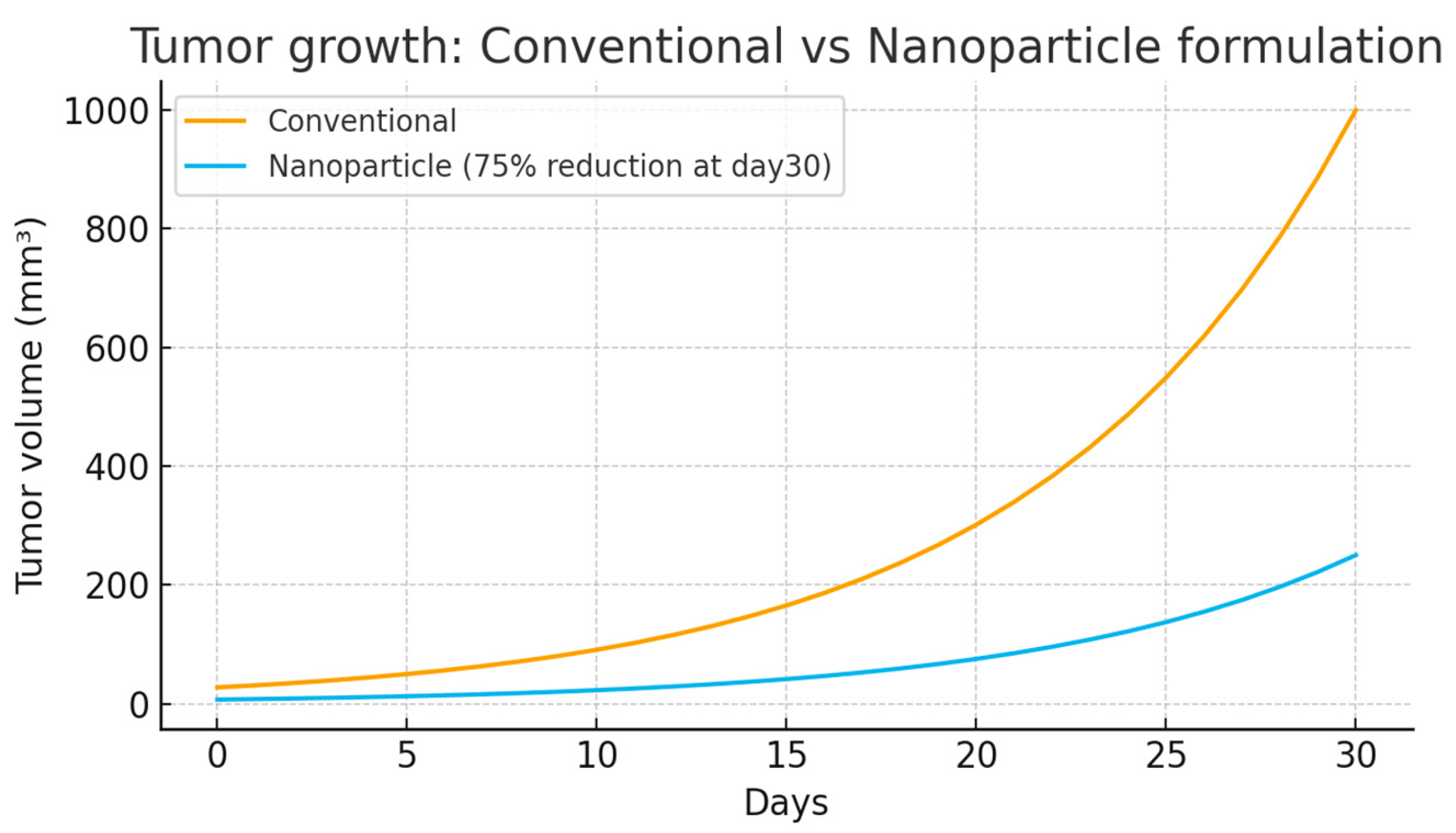 Drug-loaded nanoparticles exhibited superior cytotoxicity against cancer cell lines compared to free drug formulations. IC50 values were reduced 2–5 fold, depending on the specific drug and cell line tested. Over 30 days, tumors treated with the conventional formulation grew rapidly to about 1000 mm