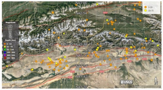- Wang, C. Research on Kyrgyzstan seismic activity and monitoring network. Prog. Earthquake Sci. 2021, 51, 65–71. (In Chinese) [Google Scholar] [CrossRef]