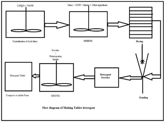 The detergent tablet manufacturing process consists of (i) neutralization of LABSA (ii) formulation of detergent and (iii) compressing to tablet form along with disintegrating agents (Figure 1).