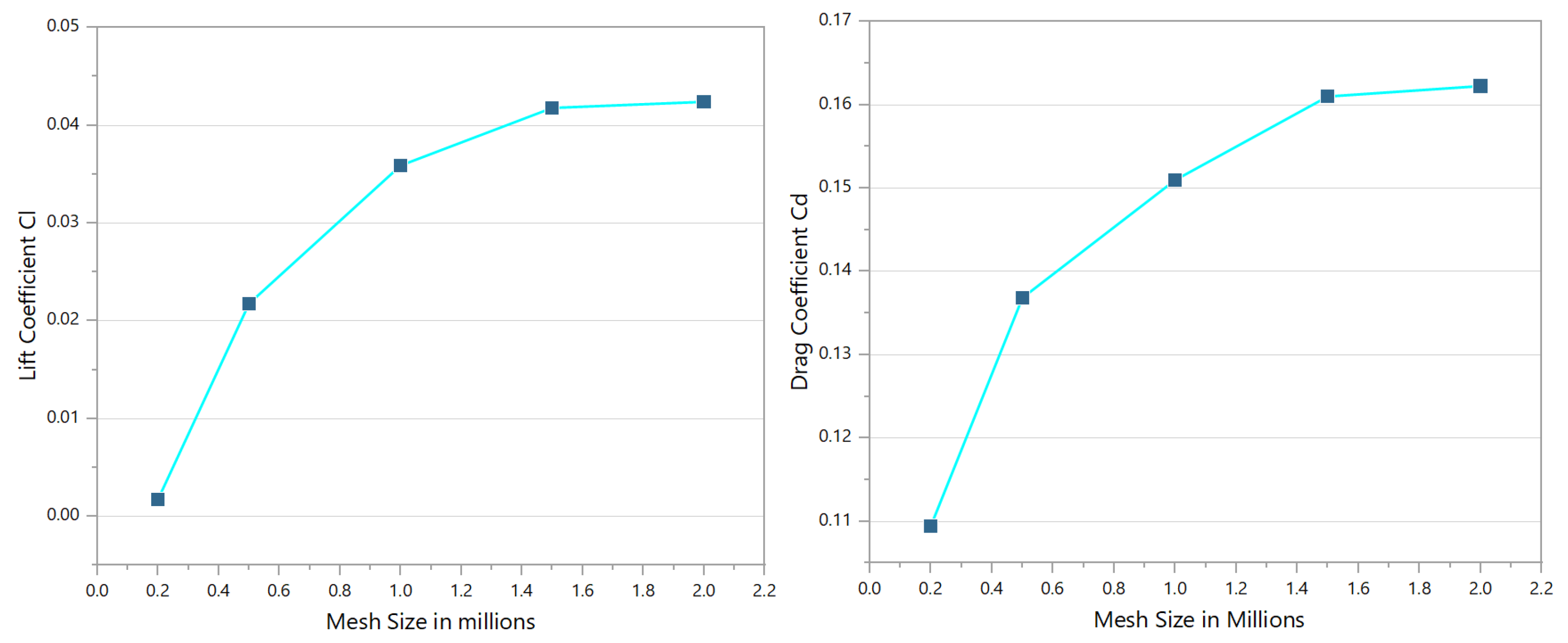Sr. No. | Mesh Size | Lift Coefficient | Drag Coefficient |