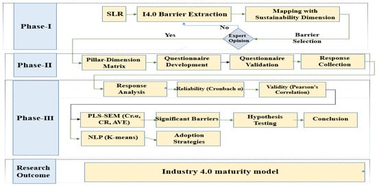 This phase includes the systematic literature review (SLR), which aims to identify barriers associated with nine different Industry 4.0 technologies. The sustainability dimension mapping process is performed in this phase. This process categorizes the identified barriers into five dimensions: economic, environmental, organizational, social, and technological. L. Seghezzo states that the five-dimensional model functions as a versatile analytical and policymaking instrument, enhancing existing frameworks rather than displacing them [].