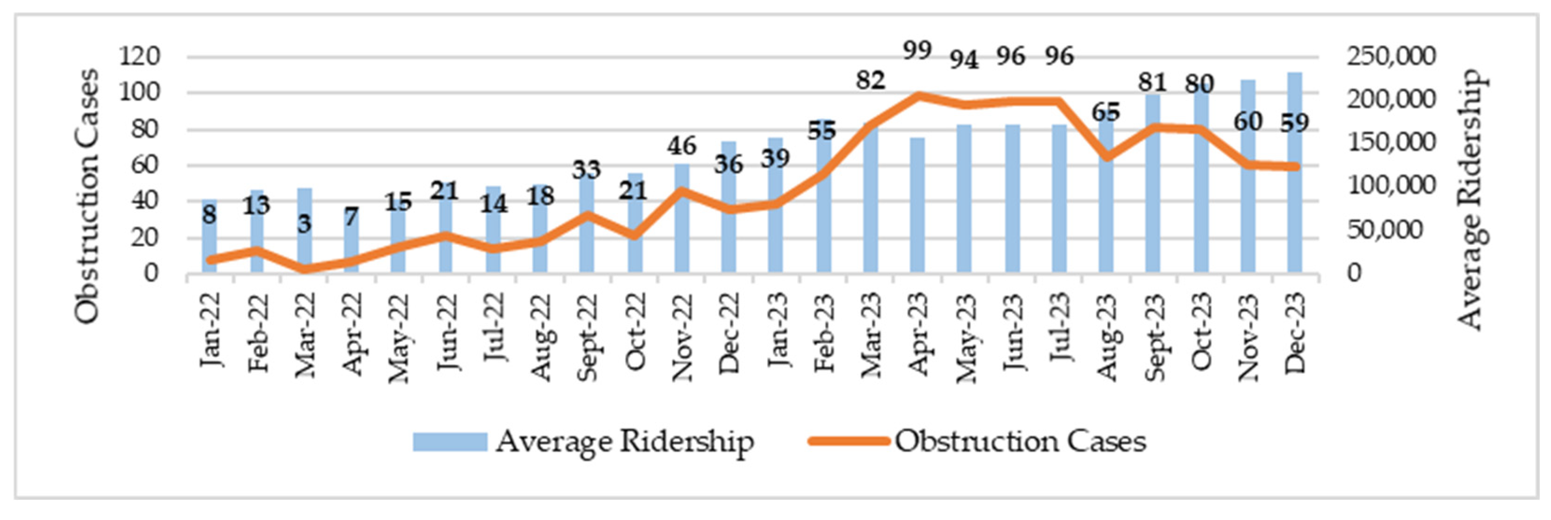 - Frequency Class F1 (Frequent): With a peak of 99 cases/month recorded in April 2023, passenger obstruction events occurred at a high rate.
