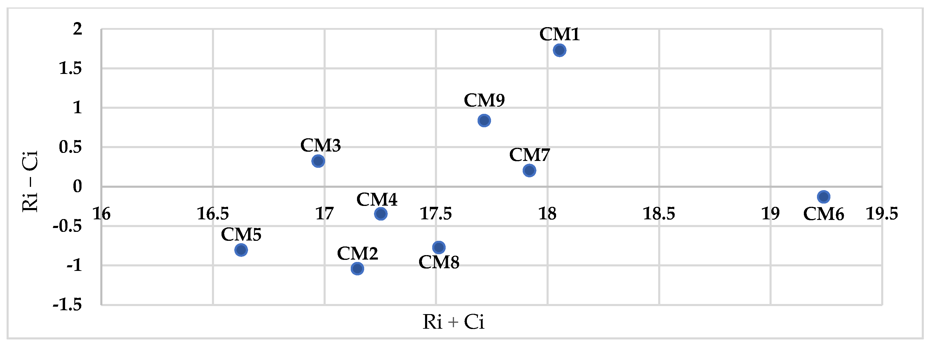 | Implemented CM | Ri | Ci | Ri + Ci | Ri − Ci |