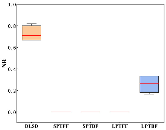 Boxplot of the NR metric for the DLFD heuristic and comparison heuristics.