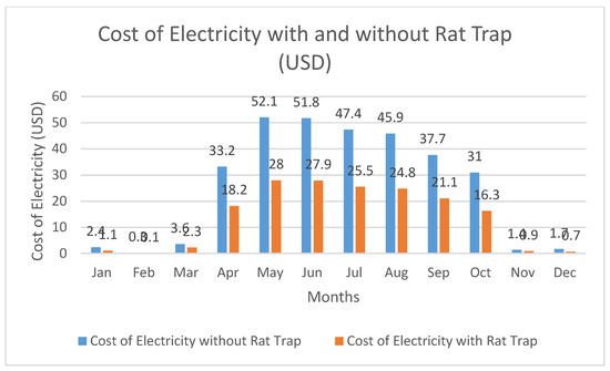 Additionally, Figure 1 illustrates the effect of thermal insulation using rat-trap bond masonry on monthly electricity consumption. Structures with rat-trap insulation consistently consumed 12–16% less electricity, leading to reduced operational costs and improved thermal comfort, especially in hotter months.