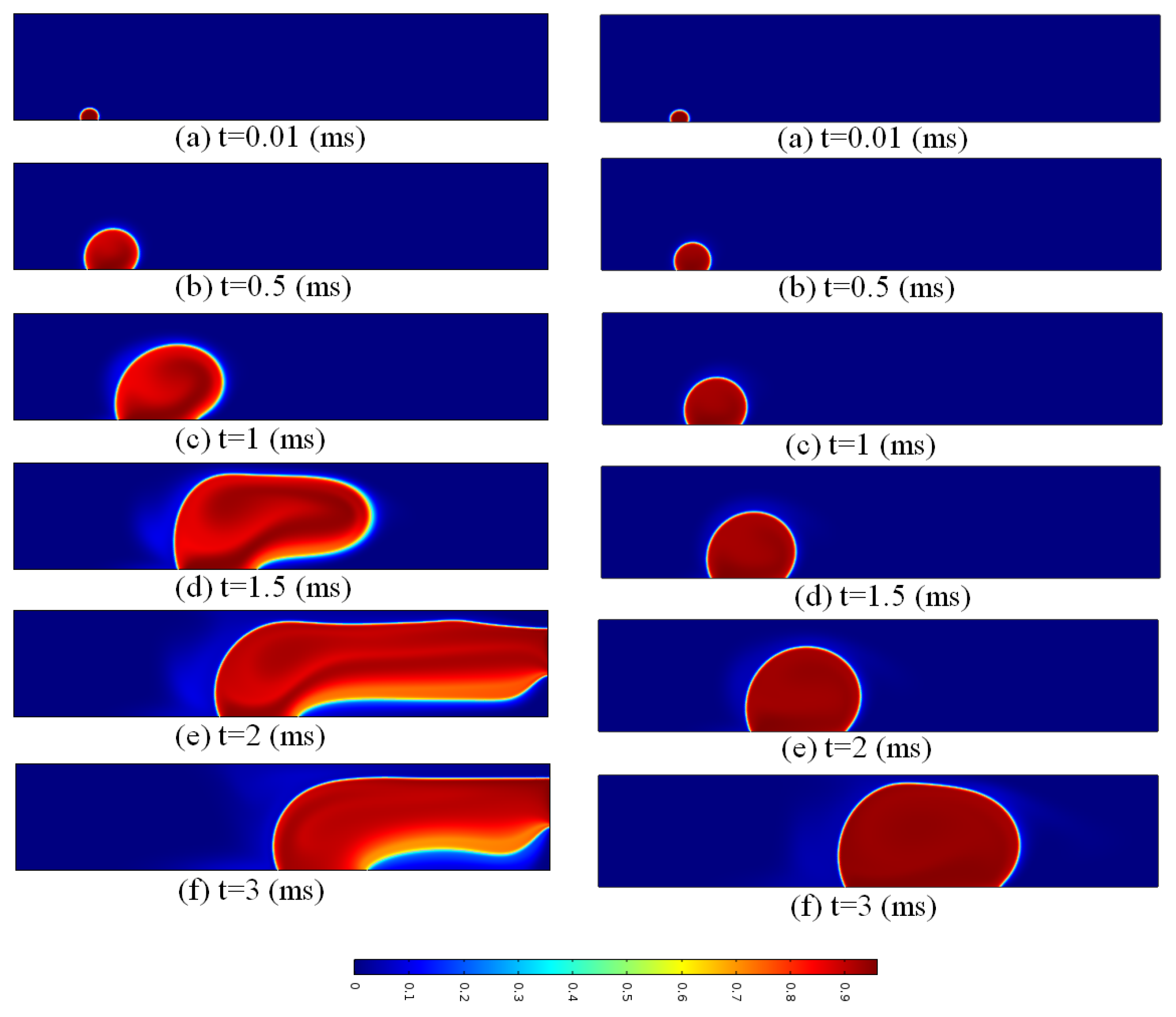 - Jacqmin, D. Calculation of two-phase Navier–Stokes flows using phase-field modeling. J. Comput. Phys. 1999, 155, 96–127. [Google Scholar] [CrossRef]