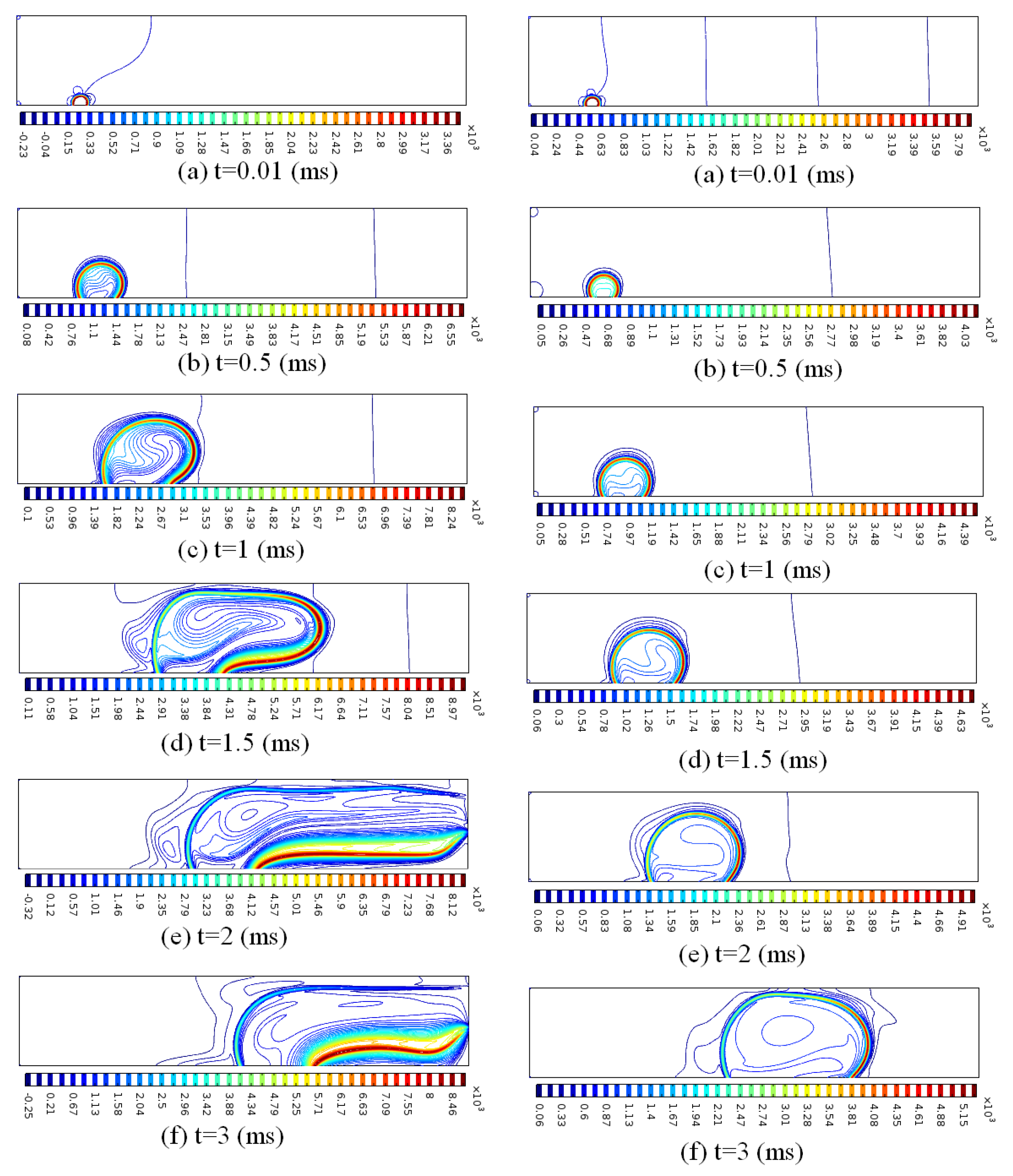- Hardt, S.; Wondra, F. Evaporation model for interfacial flows based on a continuum-field representation of the source terms. J. Comput. Phys. 2008, 227, 5871–5895. [Google Scholar] [CrossRef]