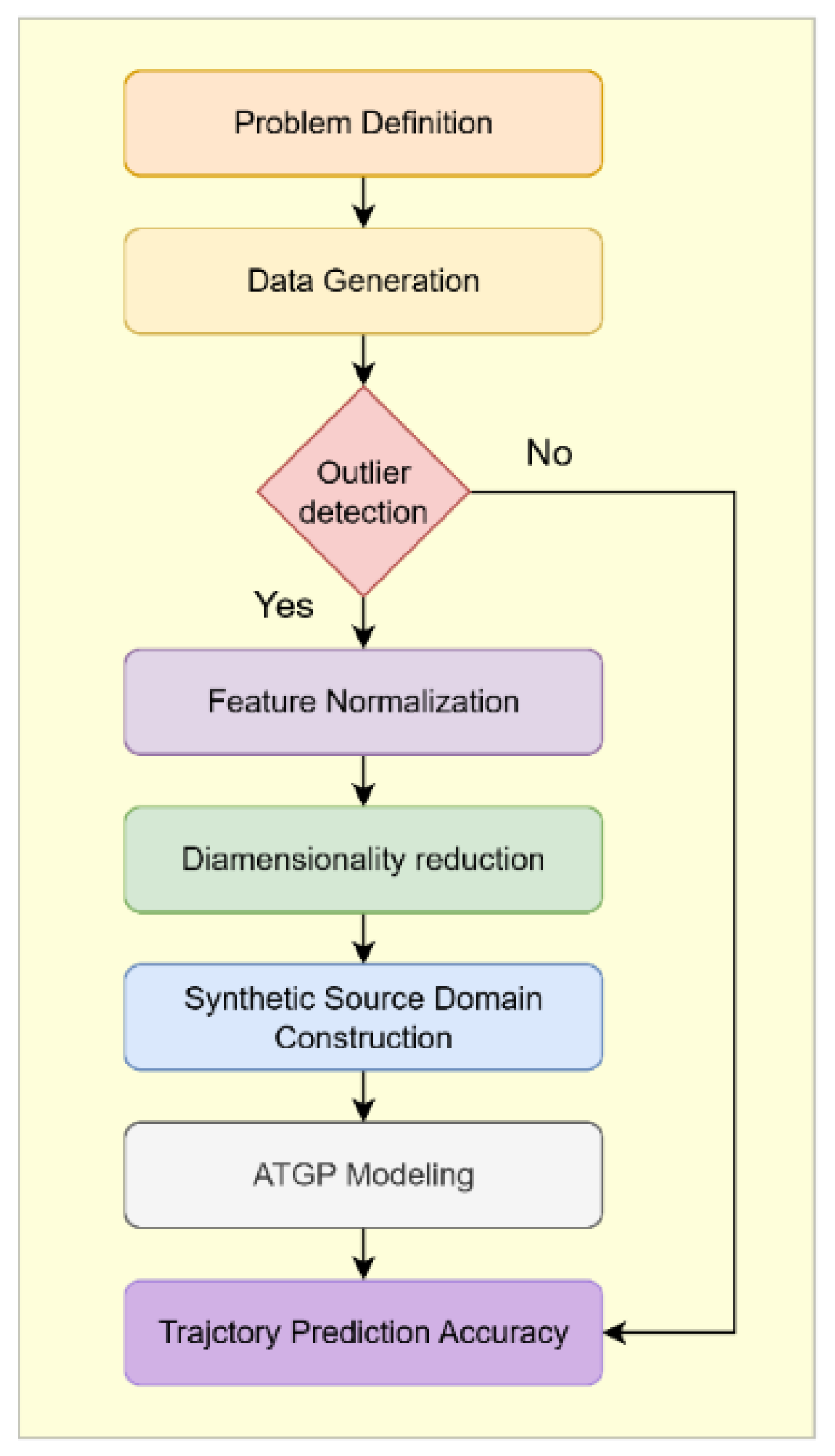 Figure 2. It outlines the key stages from data preprocessing and dimensionality reduction to synthetic source generation and ATGP-based multi-output prediction.