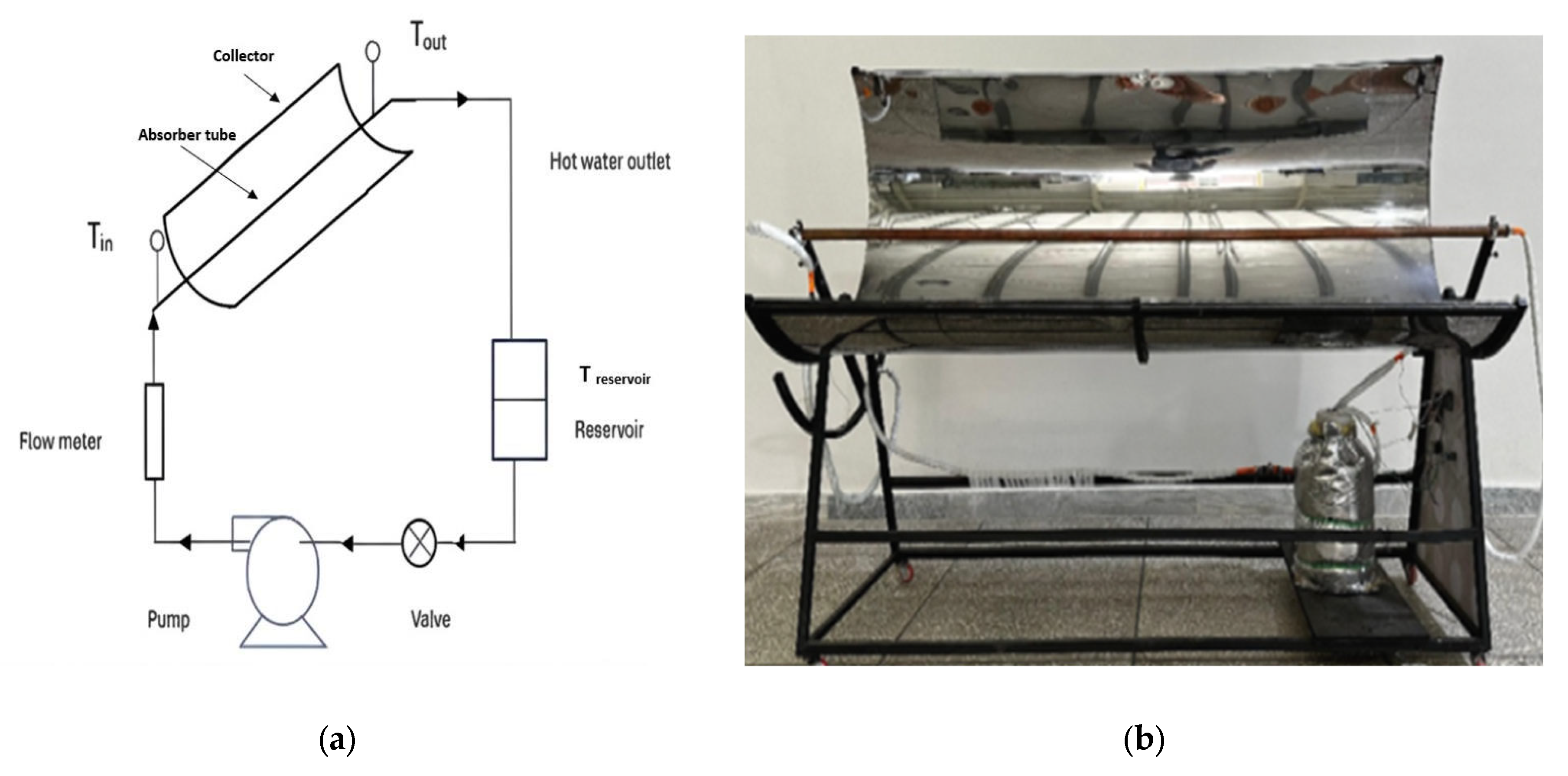 - Alghamdi, F.A.M. Performance Analysis of a Parabolic Trough Solar Collector. Master’s Thesis, Department of Mechanical and Civil Engineering, Florida Institute of Technology, Melbourne, FL, USA, 2019. Available online: https://repository.fit.edu/etd/1020 (accessed on 30 June 2025).